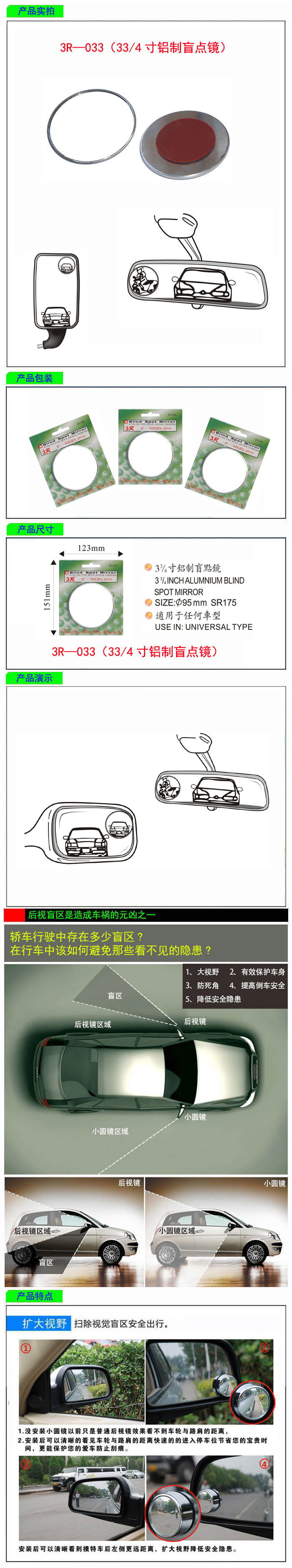 • 型號(hào):   3R—033(33/4寸鋁制盲點(diǎn)鏡)
