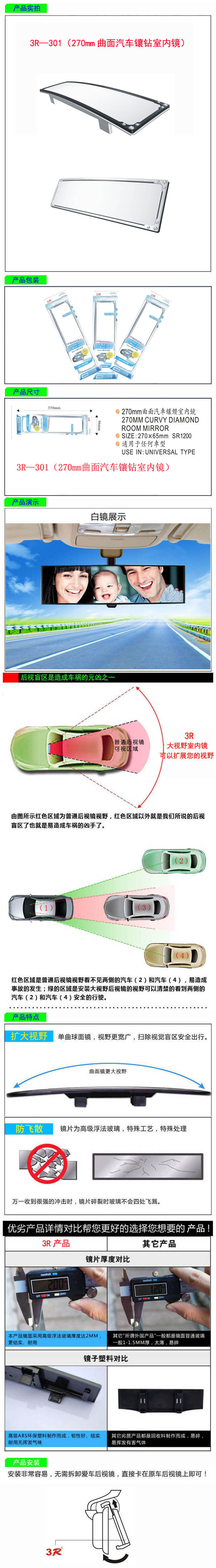 • 型號:   3R—301(270mm曲面汽車鑲鉆室內鏡)